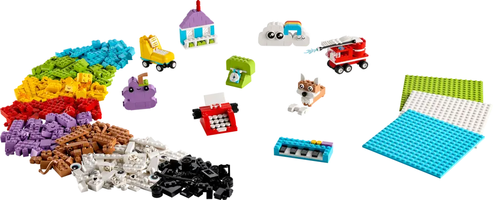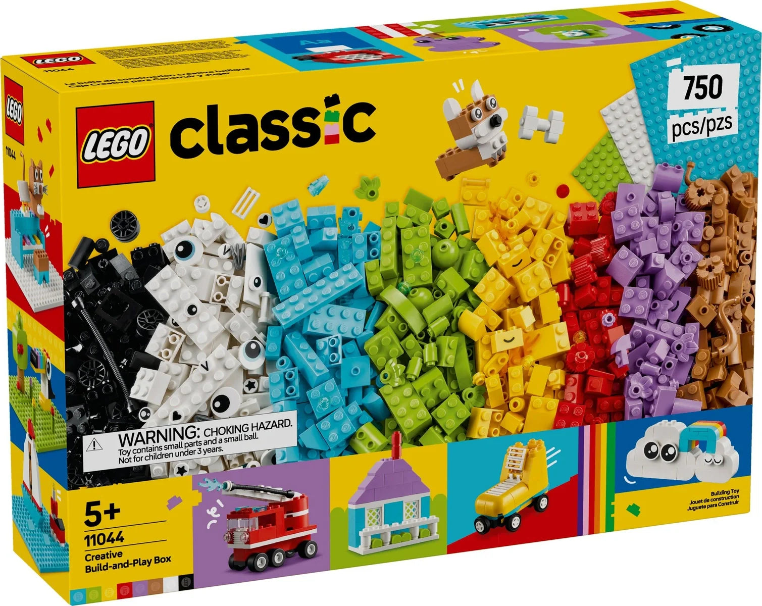 El set de construcción infantil LEGO® Classic Caja Creativa para Construir y Jugar (11044) contiene 750 ladrillos de colores y montones de elementos especiales para que los niños y las niñas a partir de 5 años se lo pasen genial dando forma a modelos de construcción rápida e infinitas creaciones surgidas de su imaginación.Con 750 ladrillos de brillantes colores, 3 bases de construcción 16x16, piezas que representan ojos, ruedas, ventanas y otros elementos especiales, este set repleto de juegolleva a las manos de los peques toda la diversión que produce construir. Una sencilla guía pondrá en marcha la creatividad mostrándoles a los niños cómo pueden construir muchísimos modelos fantásticos, como una casa, un perro con un hueso, un camión de bomberos con escalera móvil, un teclado musical, un teléfono, una máquina de escribir, una uva, un patín y nubes con un arcoíris.