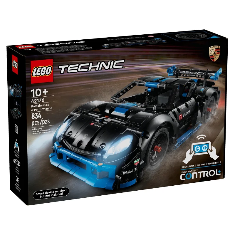 Envía a niños de 10 años en adelante a toda velocidad en un emocionante proyecto mientras ensamblan este juguete LEGO Technic Porsche GT4 e-Performance Race Car (42176). Este modelo de coche de carreras de juguete a control remoto viene con muchas funciones interactivas y es el coche más rápido (a partir de agosto de 2024) en la colección LEGO Technic CONTROL+. Accede a la app CONTROL+ para operar la dirección, controlar las luces y ver la retroalimentación de datos en vivo mientras los niños perfeccionan sus habilidades de conducción. Después de disfrutar de la construcción, los niños pueden poner a prueba su coche de juguete Porsche usando las geniales funciones de control remoto para conducir hacia adelante y hacia atrás. Con puertas que se abren y luces que funcionan, este detallado coche tiene mucho que explorar. Introduce a los jóvenes constructores de LEGO al universo de la ingeniería con este coche de control remoto lleno de acción. El set es una gran idea de regalo de Porsche para niños que aman los juguetes y vehículos de carreras. Viene con la app LEGO Builder, que permite a los constructores acercar y rotar los modelos en 3D y seguir su progreso. Contiene 834 piezas.